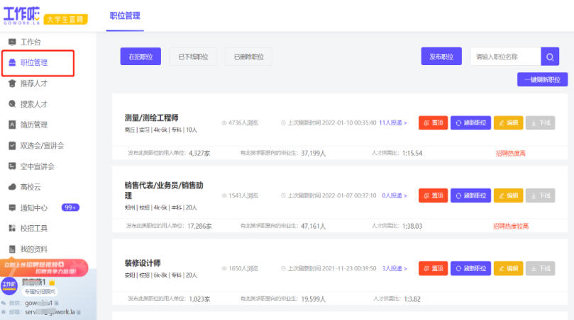 请确保发布最新招聘职位:职位发布后学生可提前进入会场了解公司详情及查看职位信息,并于活动开始后,学生对已经有意向的职位进行简历投递和面试;